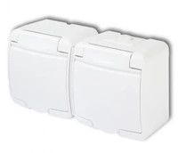 Dvouzásuvka Karlik s uzemněním, přisazená IP-54, bílá, s Junior GHE-2 klapkou