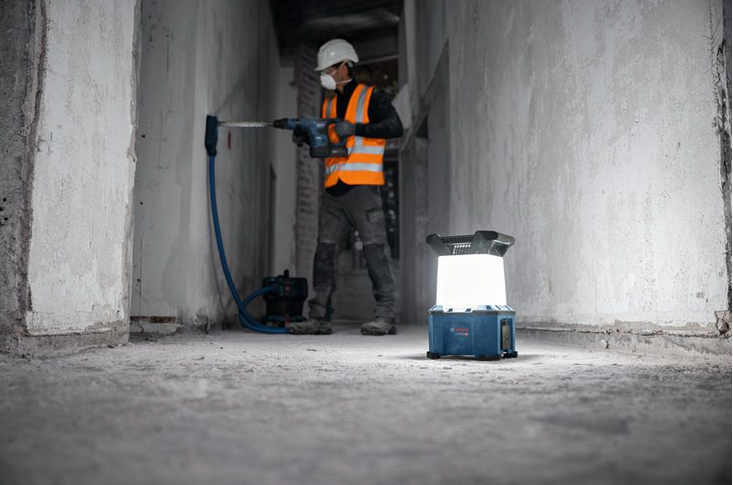 • Bosch GLA 18VH-7500 Professional je extrémně výkonná stavební LED lampa se svítivostí 7 500 lumenů, určená pro použití v náročných podmínkách. Je vybaven hybridním napájením, které funguje jak z 18voltové baterie Bosch, tak ze síťové zásuvky.