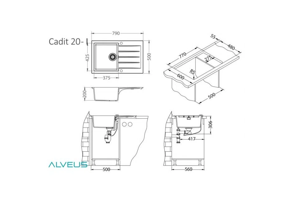 Alveus dřez Cadit 20 černý 79x50cm 1132026