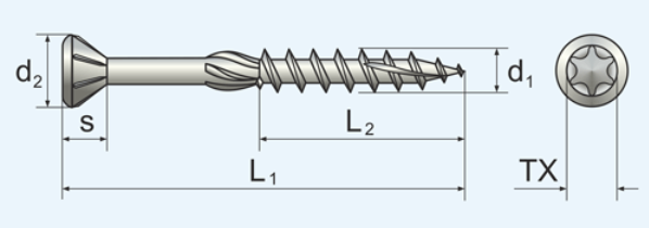 • vysoká odolnost (až o 60% vyšší než u nerezové oceli A2) a schopnost proniknout i do nejtvrdšího dřeva díky vytvrzení šroubu (kalení)