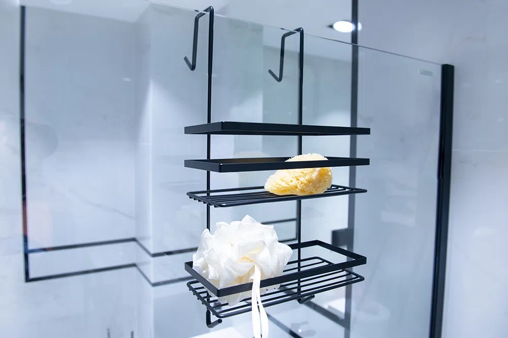 Má dva koše na koupelnové doplňky.