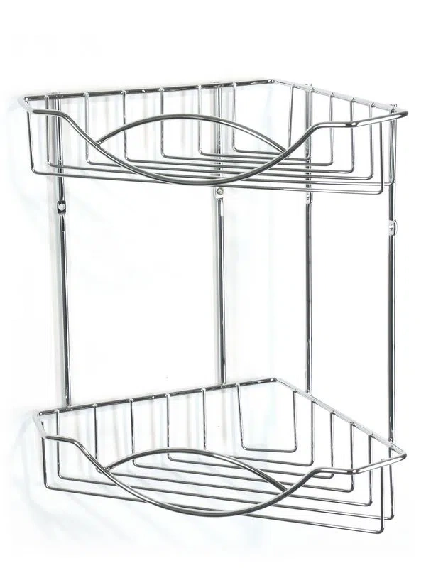 Dvojitá rohová nástěnná police z chromovaného drátu, rozměry 31x31,5x20cm