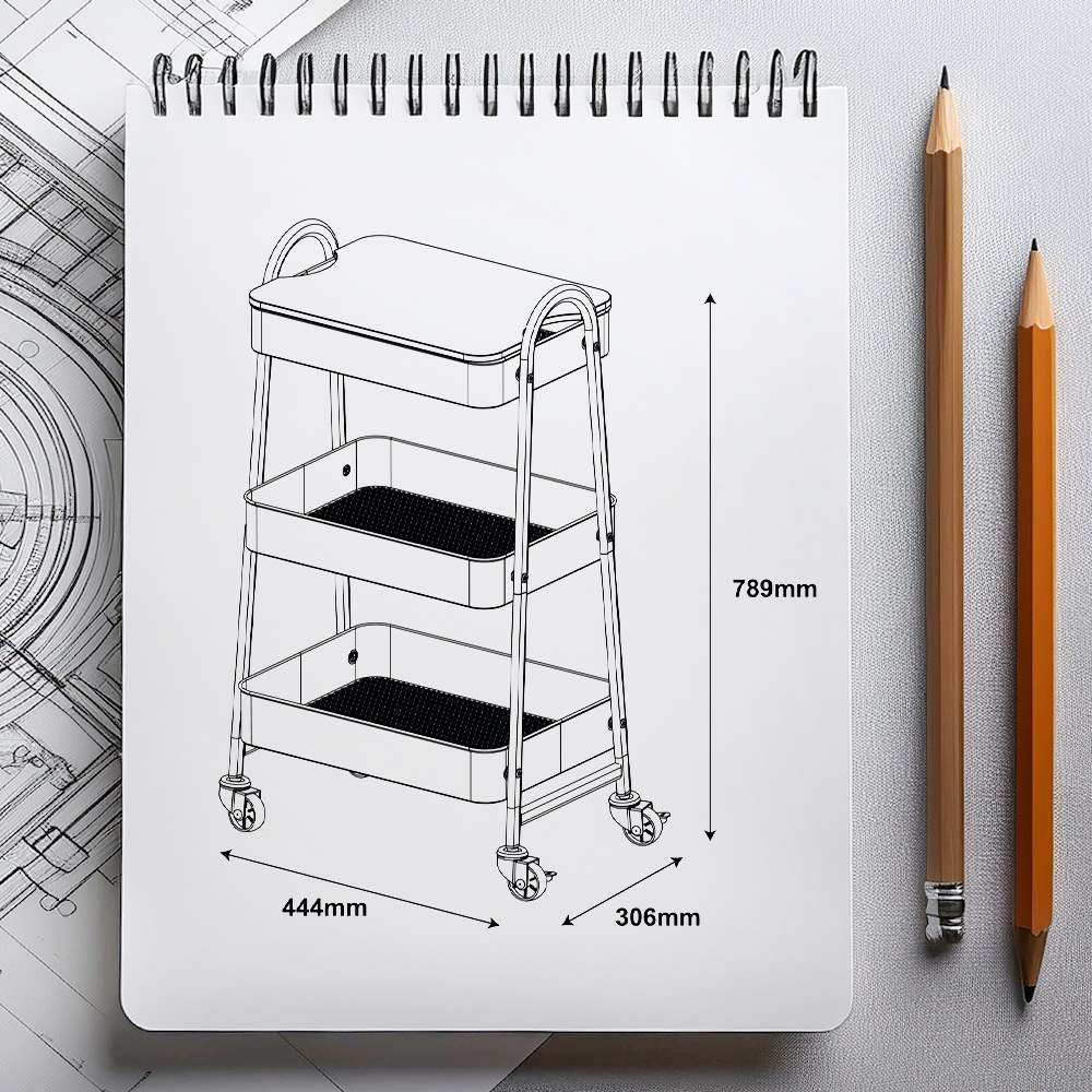 AWD Vnitřní koupelnová polička na kolečkách černá/dřevo AWD02041822