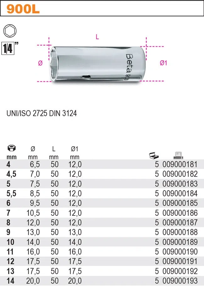 Beta dlouhý šestihranný nástrčný 1/4" 900L/11