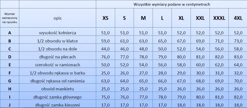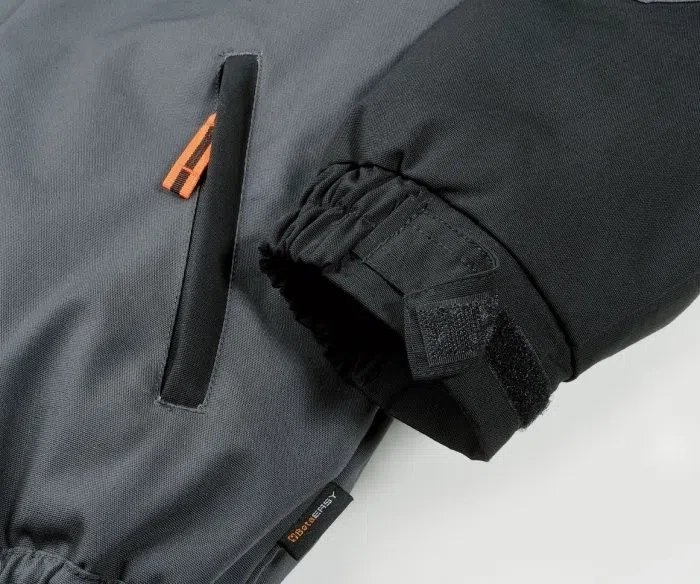 • Výrobek má manžety se zapínáním na suchý zip a hlavní zapínání je kromě klasického zipu opatřeno také páskem se zapínáním na patentky.