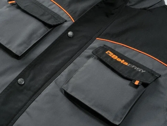 • Pracovní bunda Beta je mimořádně praktický produkt díky přítomnosti mnoha kapes, které pojmou nejnutnější nářadí - jsou umístěny na hrudi, pasu a uvnitř bundy.