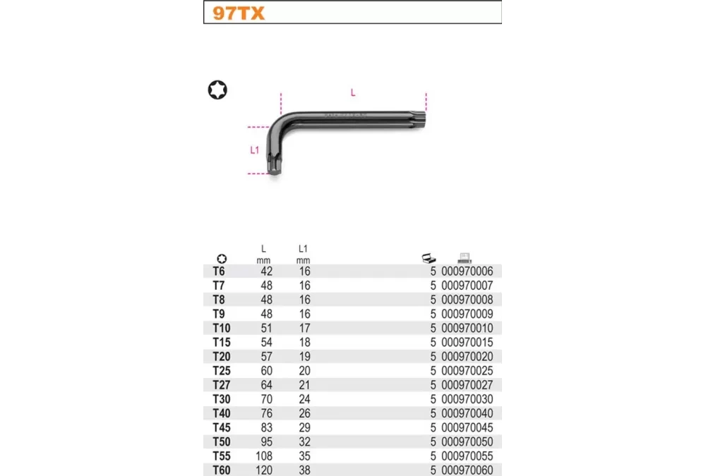 Beta úhlový klíč t30 torx na profilové čepy 97TX/30