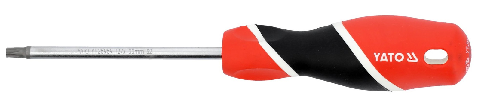 - Šroubovák Yato Torx Security T27x100mm YT-25959 je odolný nástroj pro šrouby Torx s otvorem. Je vyroben z oceli CrV a má ergonomickou rukojeť pro pohodlnou práci. Ideální pro servis elektronických zařízení, automobilů a průmyslových aplikací.