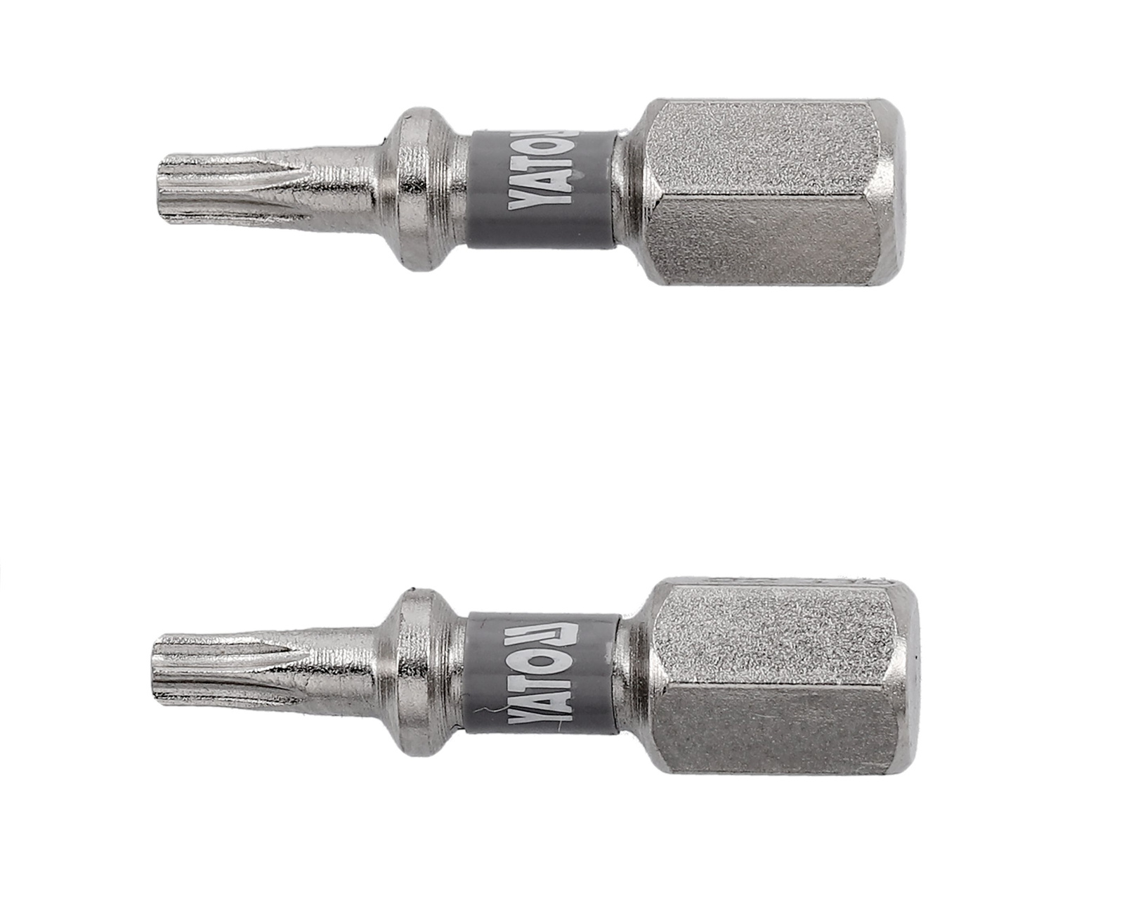 - Bity Yato YT-78011 T10 (2 ks.) 25 mm, z houževnaté oceli S2 s niklovým povlakem. Pasuje na šroubováky 1/4" HEX, ideální pro montážní a servisní práce. Odolnost proti opotřebení pro přesné zavádění šroubů.