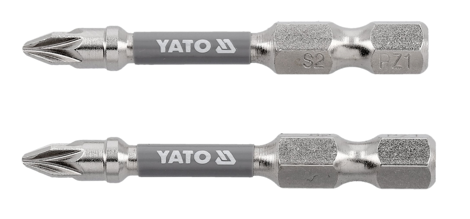• Bity Yato YT-78023 PZ1 (2 ks).) 50 mm, z odolné oceli S2 s niklovým povlakem. Pasuje na šroubováky 1/4" HEX, ideální pro montážní a servisní práce. Odolnost proti opotřebení pro přesné zavádění šroubů.