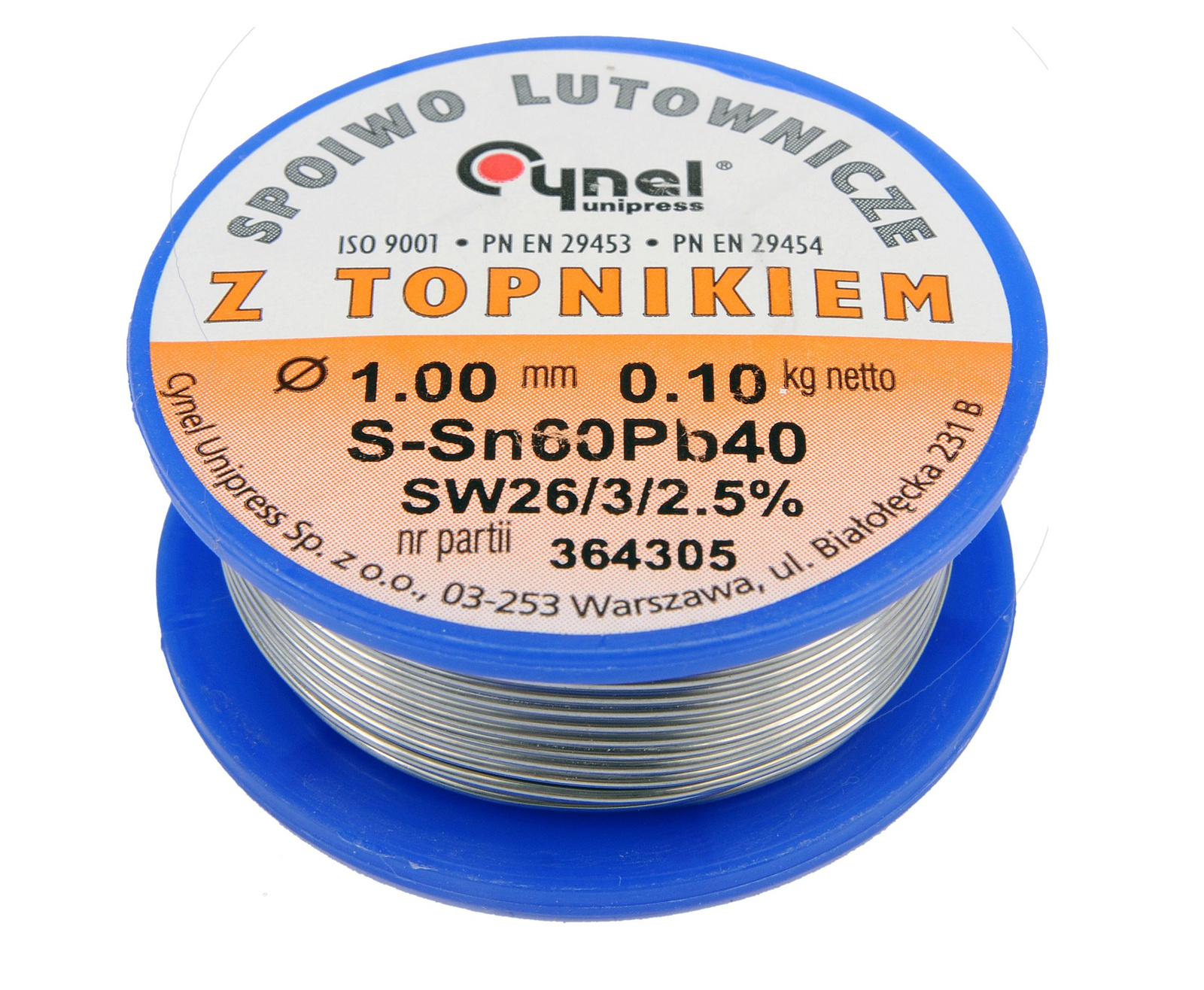 Pájka Cynel Sn60Pb40 o průměru 1 mm a hmotnosti 100 g je vysoce kvalitní slitina cínu (60 %) a olova (40 %), vyrobená podle normy PN EN 29453:2000. Díky svému optimálnímu složení poskytuje vynikající elektrickou vodivost, trvanlivé a odolné spoje a snadnou aplikaci. Pájecí pojivo se používá především v elektronickém průmyslu pro výrobu standardních elektronických zařízení a součástek, v elektrotechnice.
