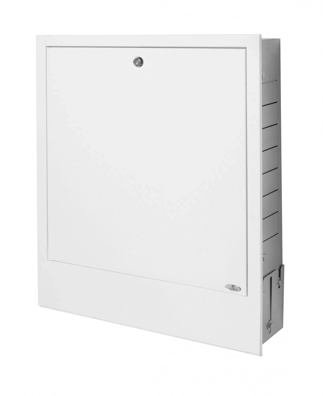Instalační skříň ve verzi pod omítku pro podlahové systémy ústředního vytápění, teplou užitkovou vodu a instalace ústředního topení.