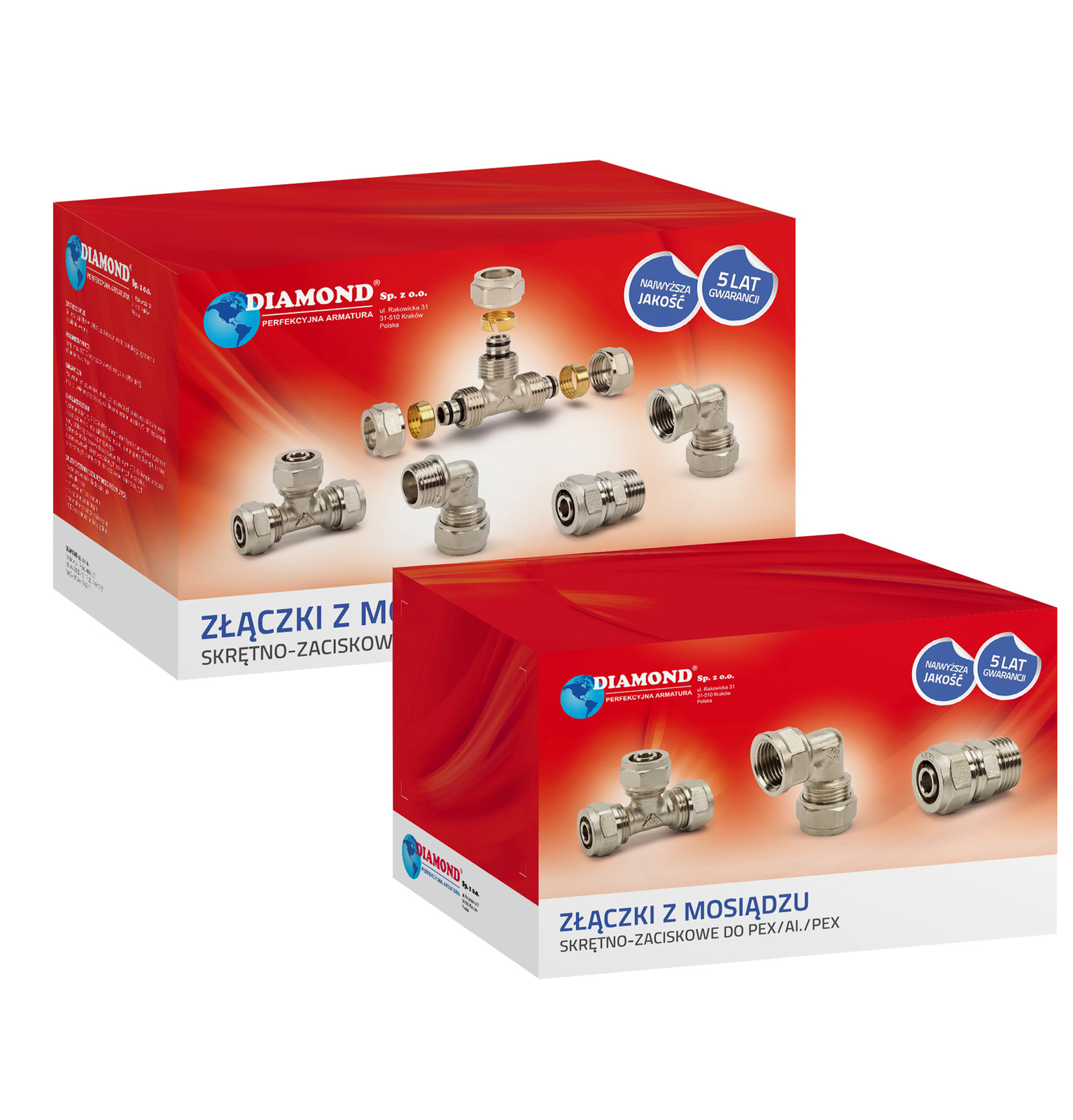 Diamantový dvojitý redukční konektor 20x20 pex-al-pex mosaz FTN-003.20x20.ZŁ-2