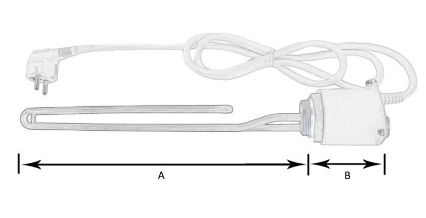 Rozměr A: 370 mmRozměr B: 70 mmElektrický ohřívač GR slouží k regulaci teploty vody v zásobníku kotle v rozmezí 15-65
