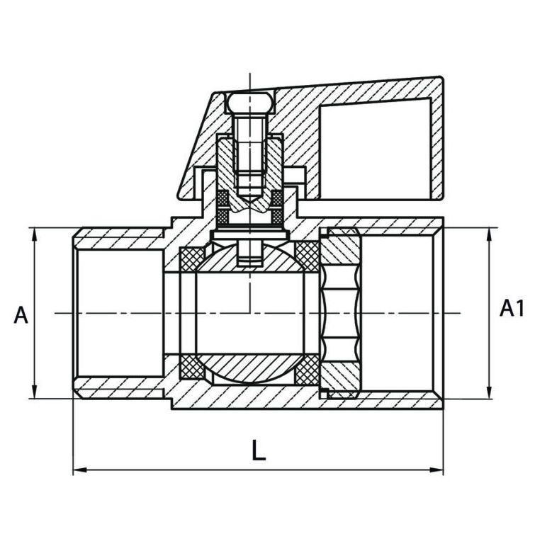 - Uvnitř ventilu je mosazná kulička, která řídí průtok vody. Povrch koule je leštěný, aby byl zajištěn hladký chod a minimální odpor proudění.