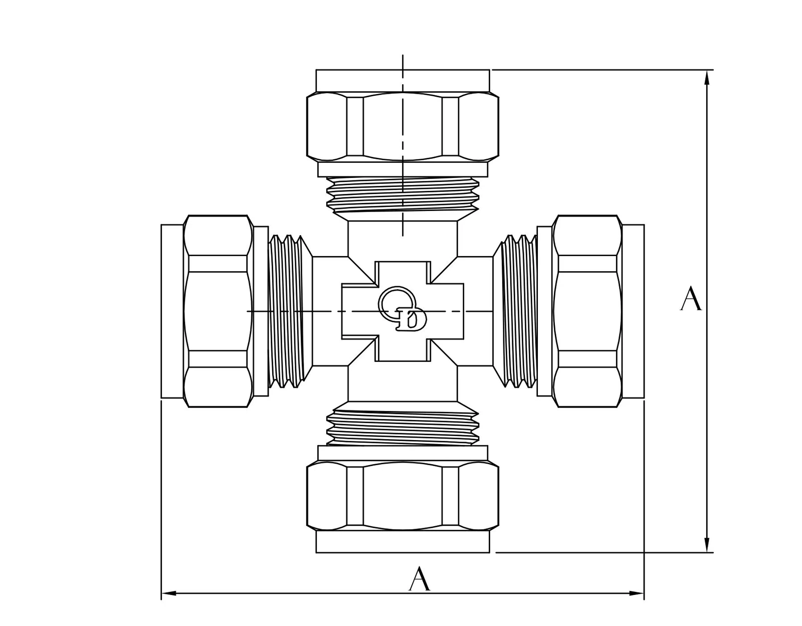 Diamantový pex-al-pex křížek kroucený 16mm FTN-011.16X16X16X16.CZ-4