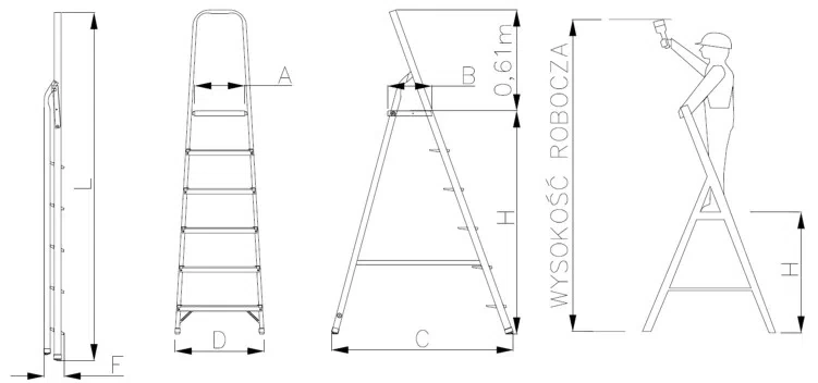 VOLNĚ STOJÍCÍ ŽEBŘÍK SE ŠIROKÝM STUPNĚM
