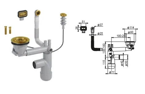 Dřezový sifon Prevex Flexloc Pro jednoduchý zlatý FL1-R9CNA-01PL