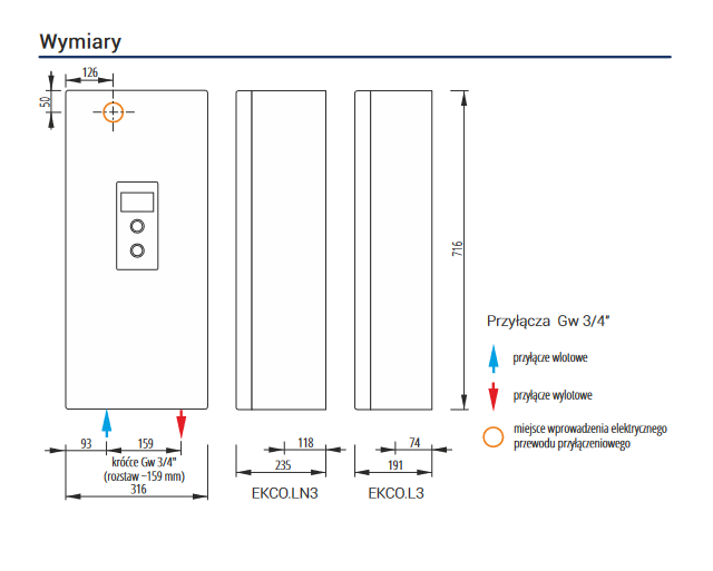 - Připojovací koncovky kotle: vnitřní závit 3/4".