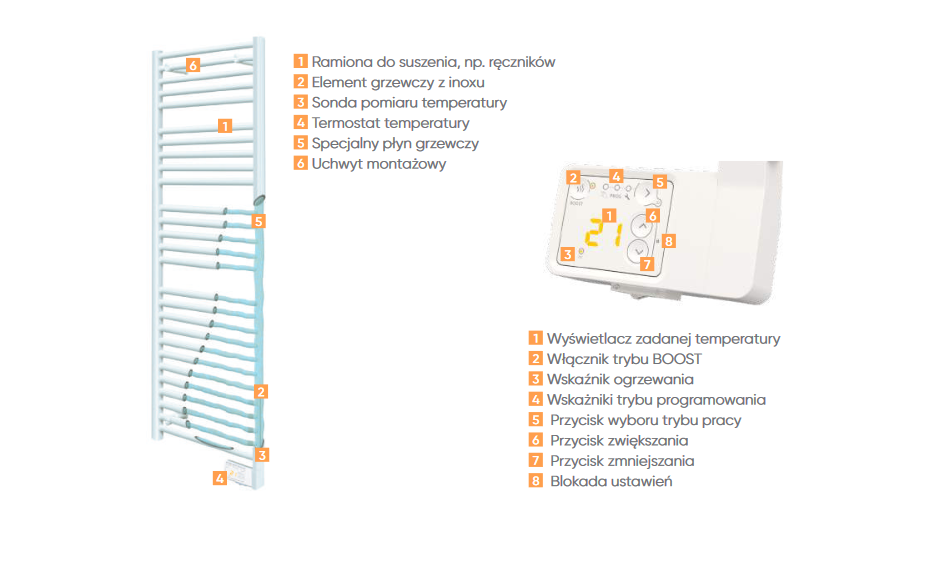 • Elektrický koupelnový sušák Theola Classic. Tvarově jednoduchý, ladný ve výrazu, zcela elektrický. Ovládací panel s LED obrazovkou. Funkce Boost. Digitální teplotní termostat.