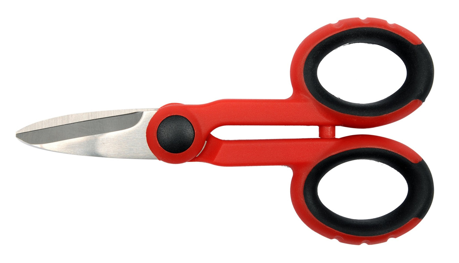 Nůžky pro elektrikáře s čepelemi určenými pro pro stříhání tenkých vodičů, izolačních pásek nebo smršťovacích bužírek.
