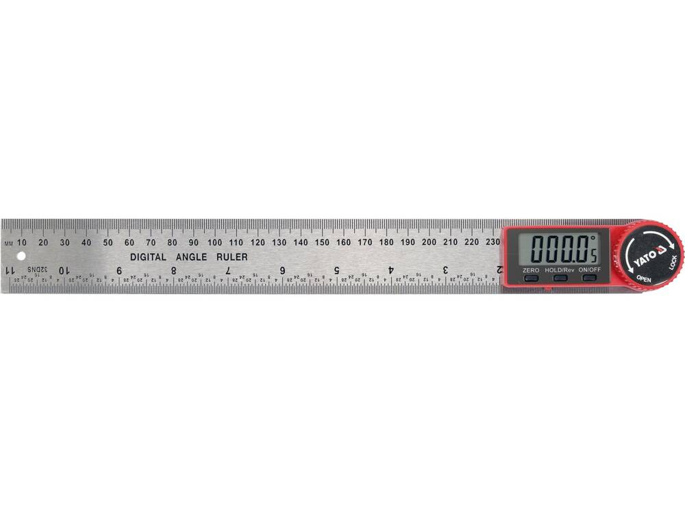 - Yato YT-71004 je elektronický úhloměr o délce 300 mm, který umožňuje přesné měření. Vyrobeno z odolné oceli s milimetrovými a palcovými stupnicemi. Ideální pro profesionály i kutily.