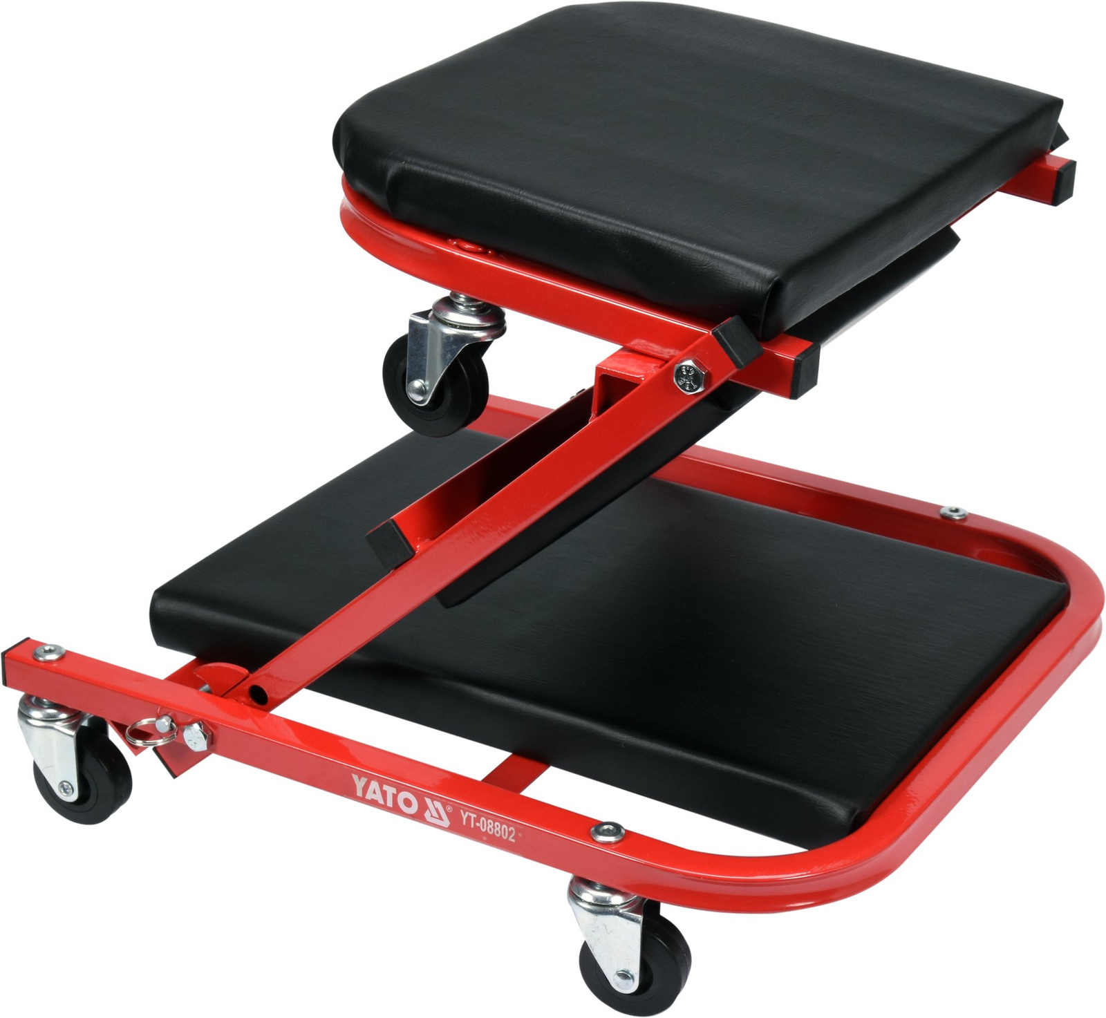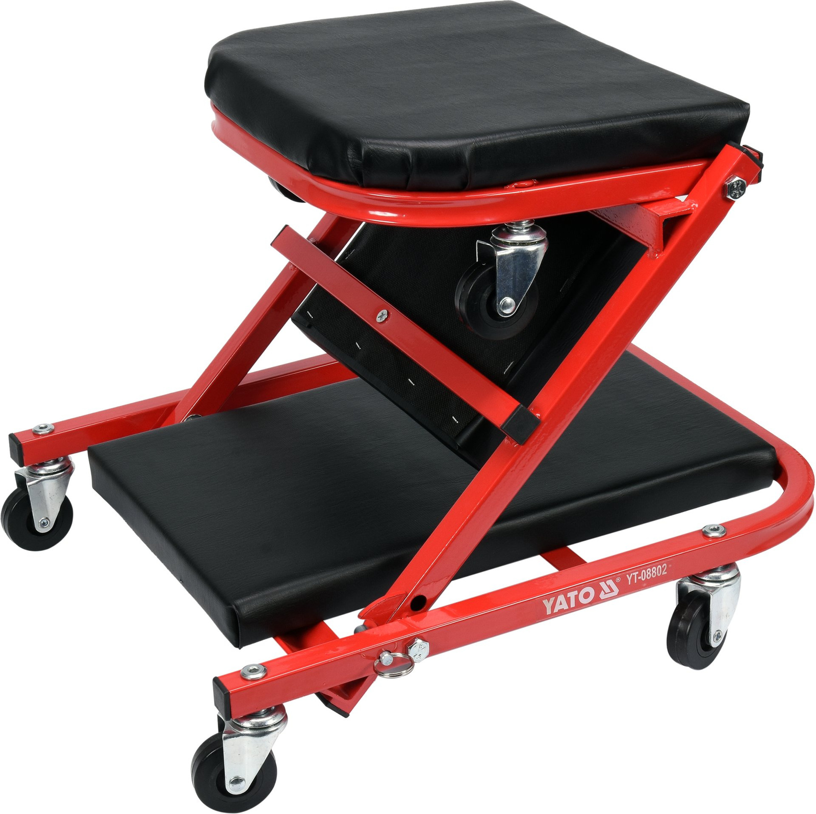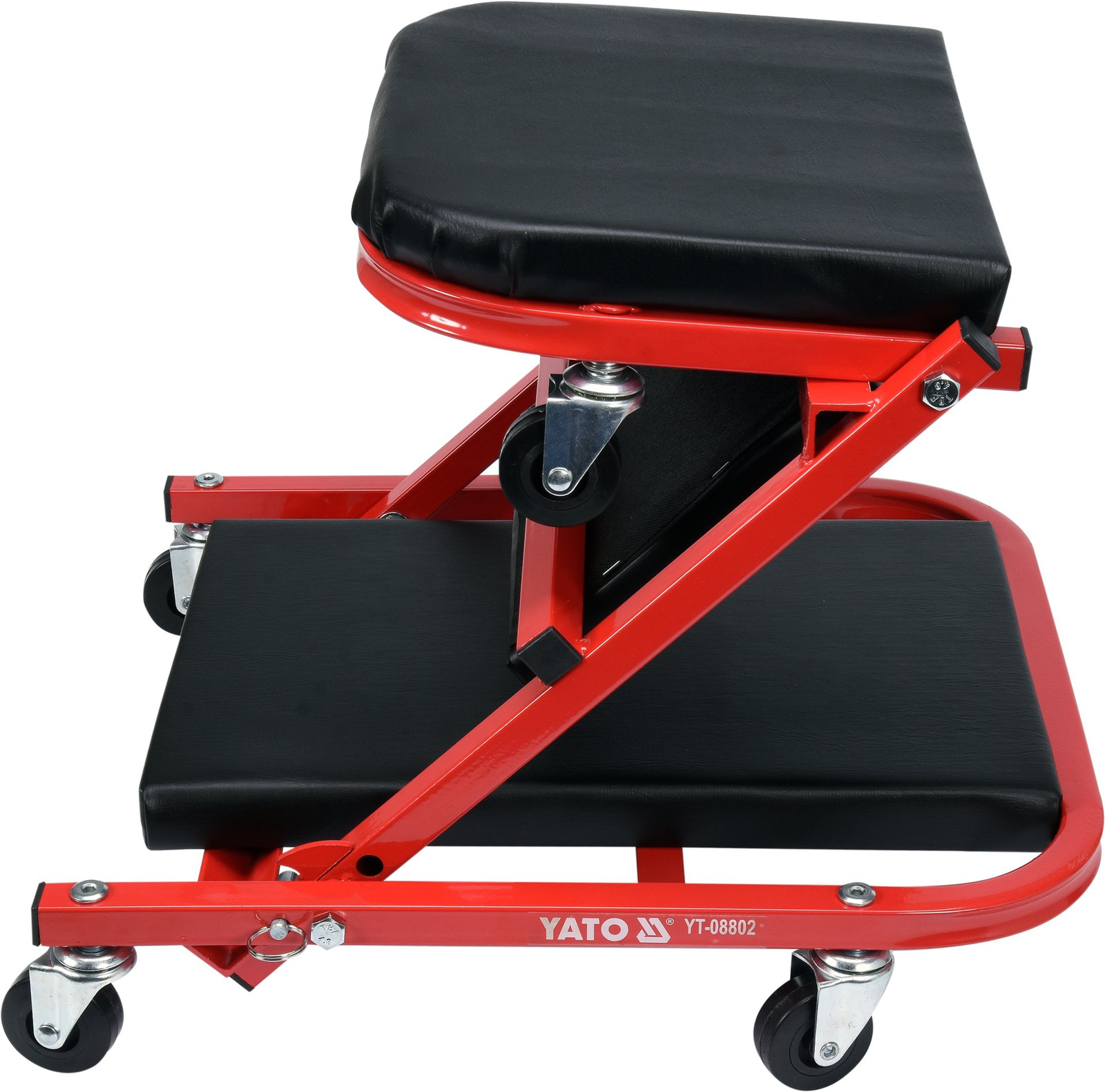 • Yato YT-08802 Dílenské lehátko 2v1 Kovový rám, plast, 6 otočných kol. Snadné přesednutí do sedačky. Max. nosnost: 150 kg (křeslo), 120 kg (sedák). Ideální pro dílny a služby.