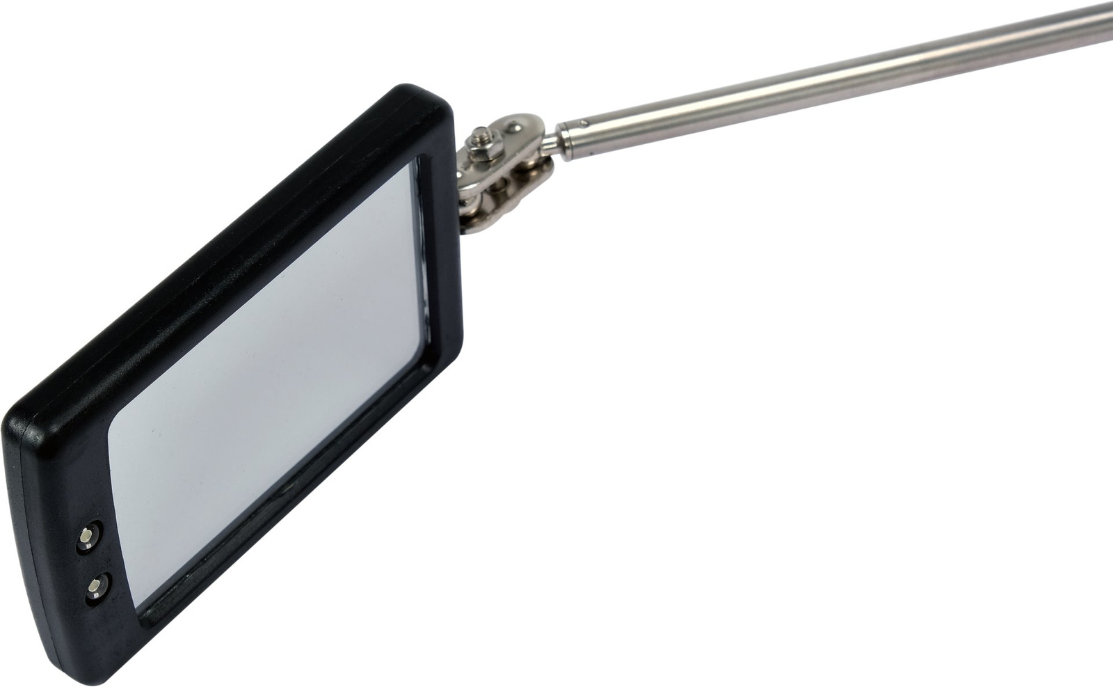 - Obdélníkové zrcadlo se 2 LED diodami:rozměr 84x53 mm, teleskopické, s osvětlením pro lepší viditelnost v tmavých prostorách.