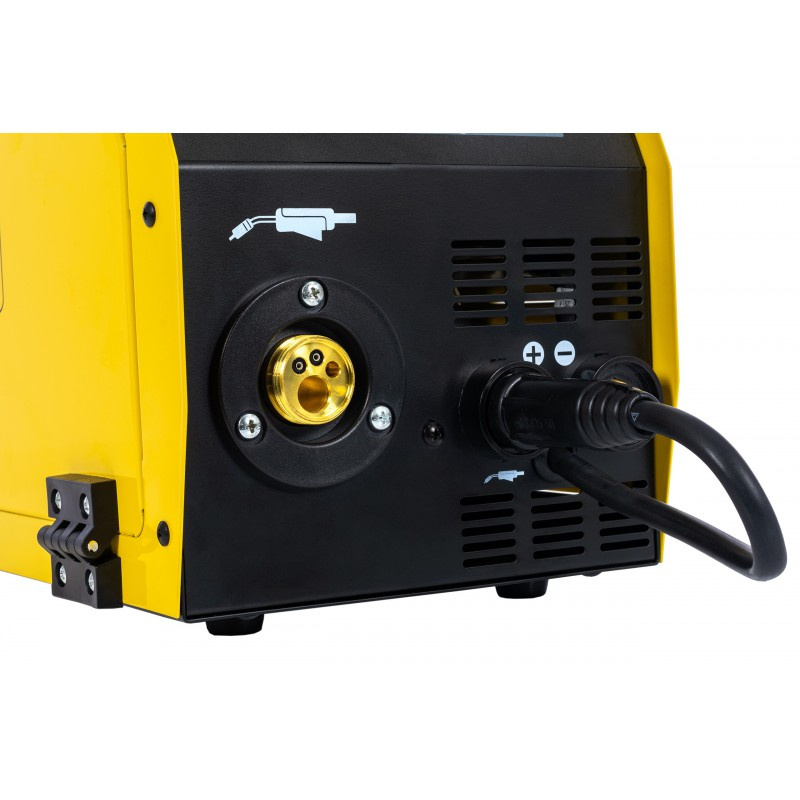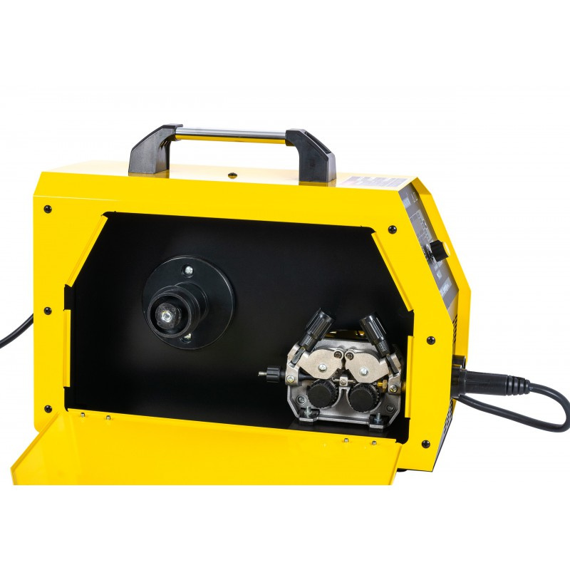 Stroj má plynule nastavitelné svařovací parametry a je vybaven systémem tepelné ochrany proti přetížení, který zabraňuje přehřátí. Svářečka je vybavena čtyřválcovým podavačem drátu se zásuvkou EURO, která umožňuje připojení různých typů svářeček.