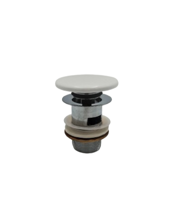 - Bílá keramická zátka z mosazi a opatřená silikonovým těsněním Výrobek je dostupný ve dvou verzích: pro umyvadla s přepadem a pro umyvadla bez přepadu