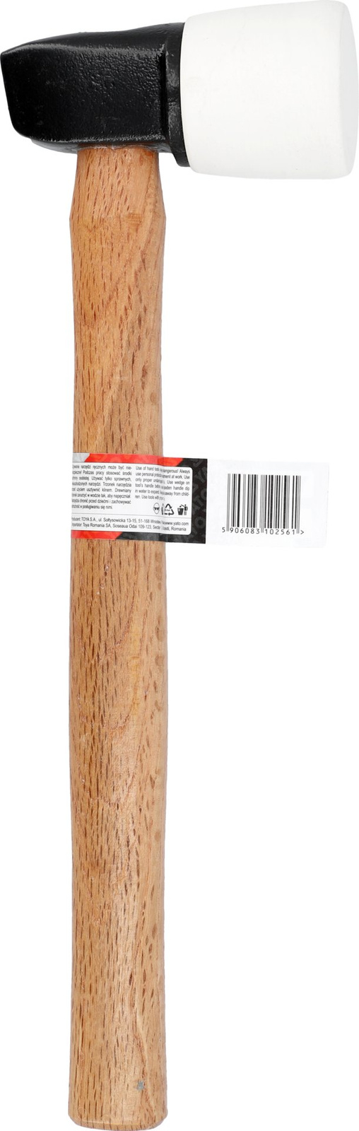- Kladivo Yato YT-46060 s bílým gumovým nástavcem, který nezanechává stopy, je ideální pro dokončovací a montážní práce. Poskytuje přesné údery bez rizika poškození povrchu. Robustní dřevěná rukojeť zaručuje pohodlné uchopení.