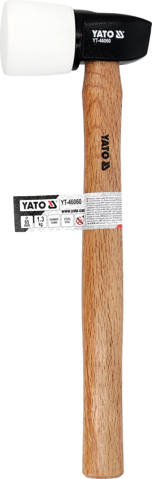 Profesionální gumové kladivo Yato, model YT-46060, vybavené bílým, nešpinivým šlehačem z vysoce kvalitní pryže. Ideální pro dokončovací práce, montáž a všude tam, kde je důležitá přesnost a jemný úder bez rizika poškození povrchu. Gumové kladivo s bílým šlehačem užitečné při pokládce podlah.