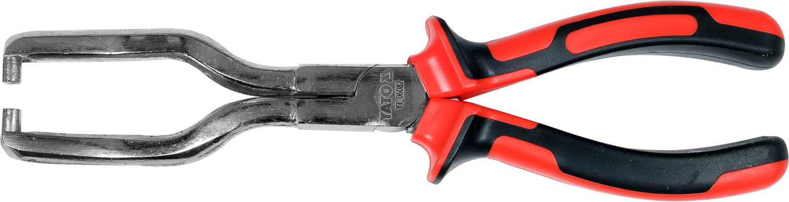 - YATO YT-06082 profesionální kleště na konektory palivového potrubí. Jsou vyrobeny z odolných materiálů a zajišťují přesné a bezpečné odpojení palivových spojek.