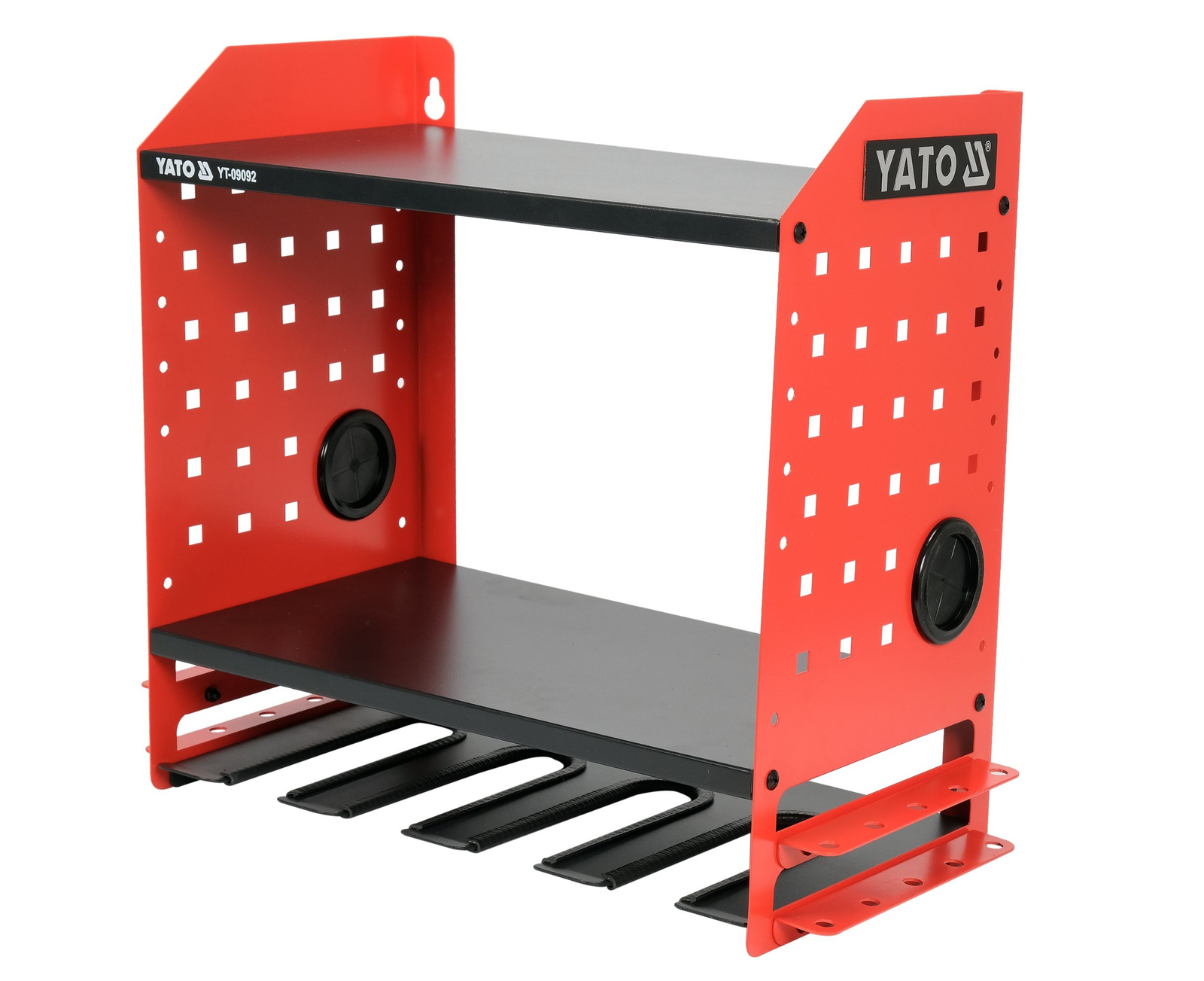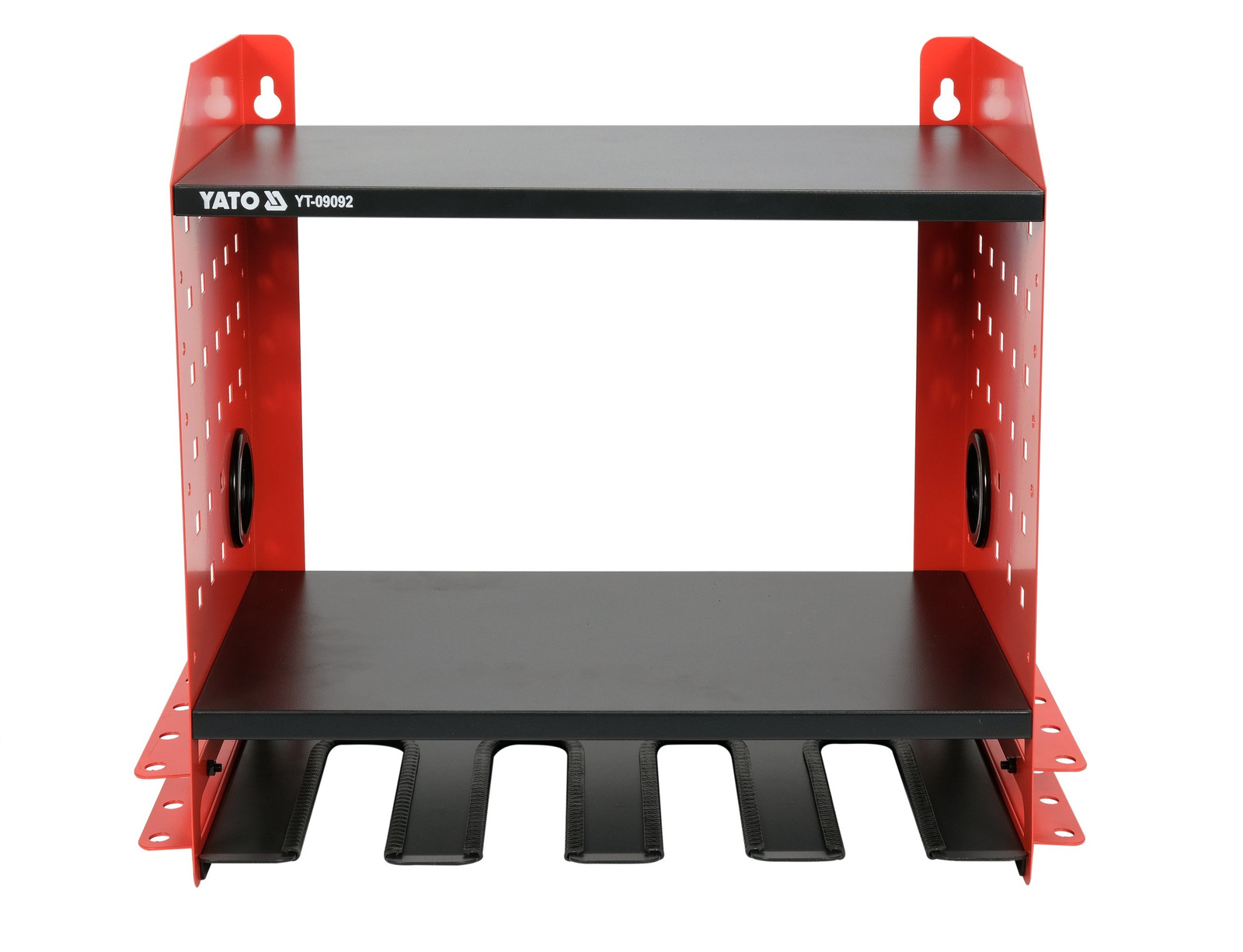 - Kovová police na elektrické nářadí YATO YT-09092 je praktickým řešením pro ukládání vrtaček, šroubováků a nabíječek. Robustní konstrukce, 3 úrovně, montážní otvory a organizér na příslušenství pro udržení pořádku v dílně.