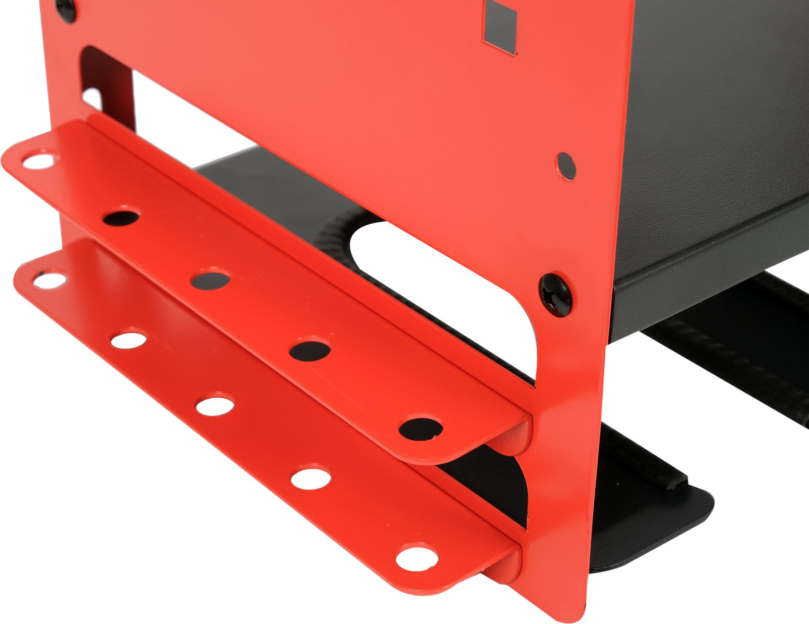 - Spodní police s výřezy: Držáky pro 4 šroubováky/vrtáky s přístupem zespodu.