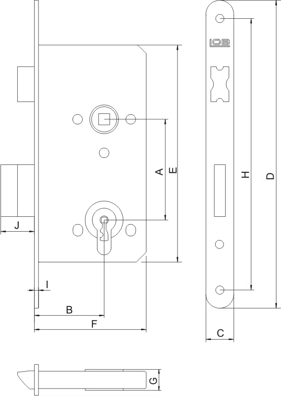 Univerzální levý/pravý zadlabací zámek pro venkovní a vnitřní dveře do hmotnosti 100 kg.