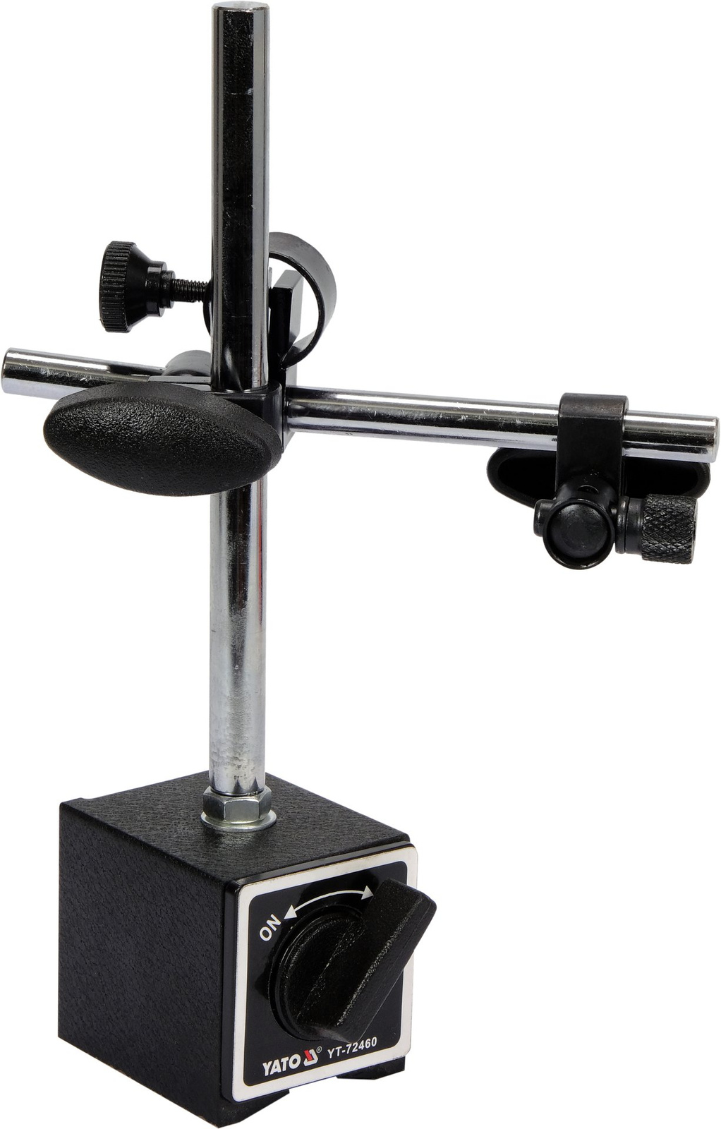 - Magnetický stojan YT-72460 pro senzory YT-72450 a YT-72453: pružinový kloub pro přesnost, středové a horní zajištění knoflíkem, základna s hranolovou drážkou. Silná přitažlivost a snadné uvolnění pomocí knoflíku.