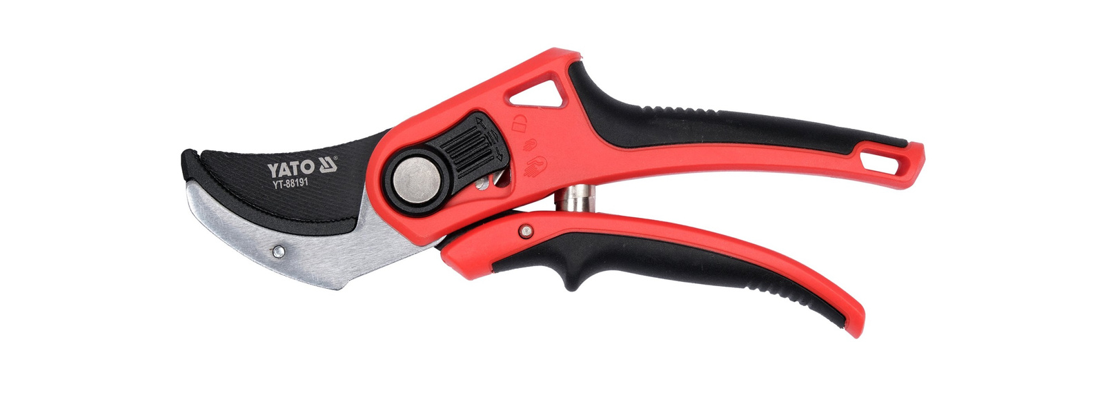 - Yato YT-88191 je nastavitelný zahradní nůž s kovadlinkou, ideální pro přesné stříhání větví. Vyrobeno z odolných materiálů pro pohodlné používání a dlouhou životnost. Ergonomická rukojeť usnadňuje práci.