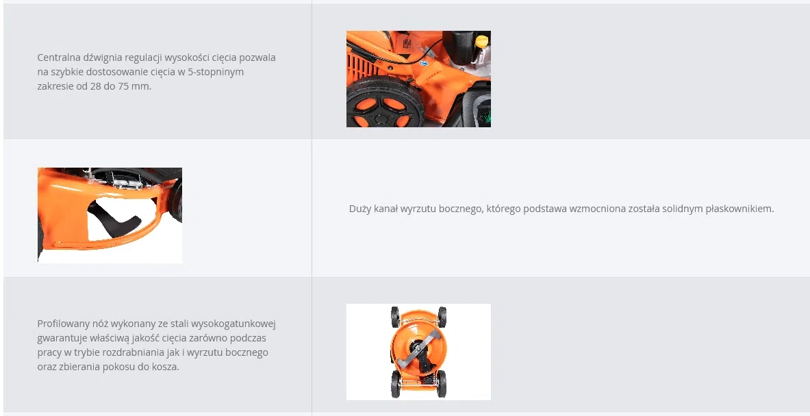 - Zesílená a ergonomická páka, která nastavuje výšku sečení (5 poloh).