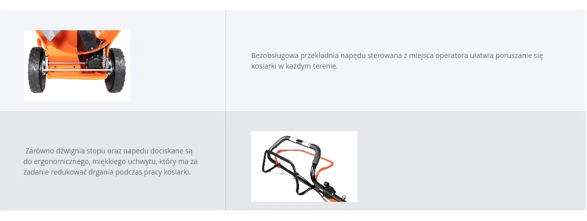- Ergonomické páky motoru a hnací brzdy vyrobené z plastu zajišťují trvale pevný a pohodlný úchop.
