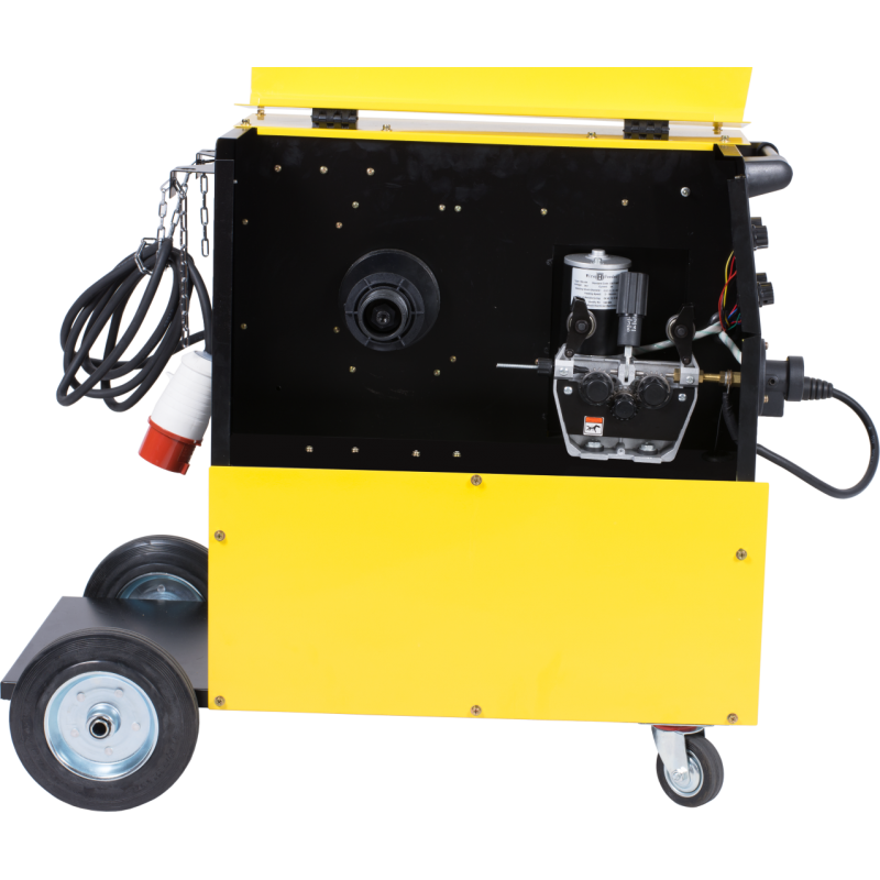 Umožňuje připojit klasické svařovací kabely a svařovat obalenou elektrodou, přeměnit poloautomat na elektrodový svářecí stroj, ale také umožňuje svařování bez plynu se samostíněnými dráty (FCAW). | 400V/50Hz |