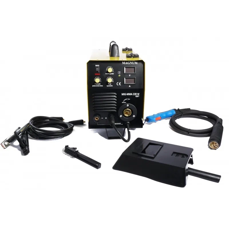 Zařízení MAGNUM MIG-MMA 220W IGBT je profesionální poloautomatický svařovací stroj určený pro ruční, elektrické svařování nízkouhlíkové a nízkolegované oceli (MAG), legované oceli (MIG) a hliníku a jeho slitin.