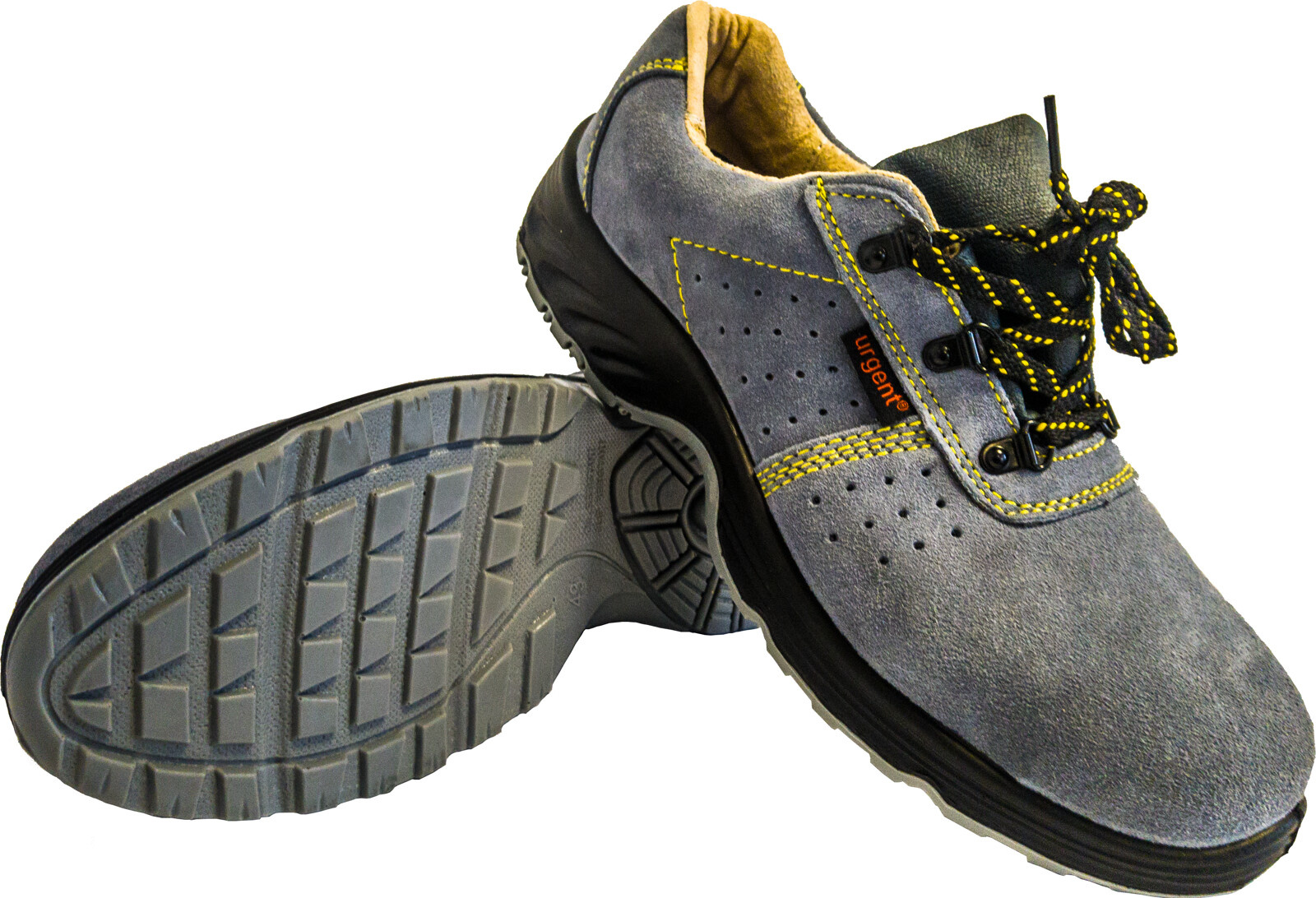 - Bezpečnostní polobotky s kovovou špičkou, svršek z hovězí semišové kůže, podšívka z vepřovice. Podešev PU/PU s dvojí hustotou, protiskluzová, odolná proti olejům, absorpce energie v patě. Splňuje normu EN ISO 20345.