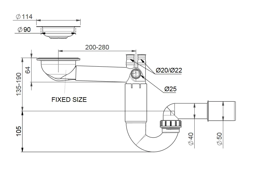 Prevex P-loc sifon jednodřezový PL1-D9C45-01PL