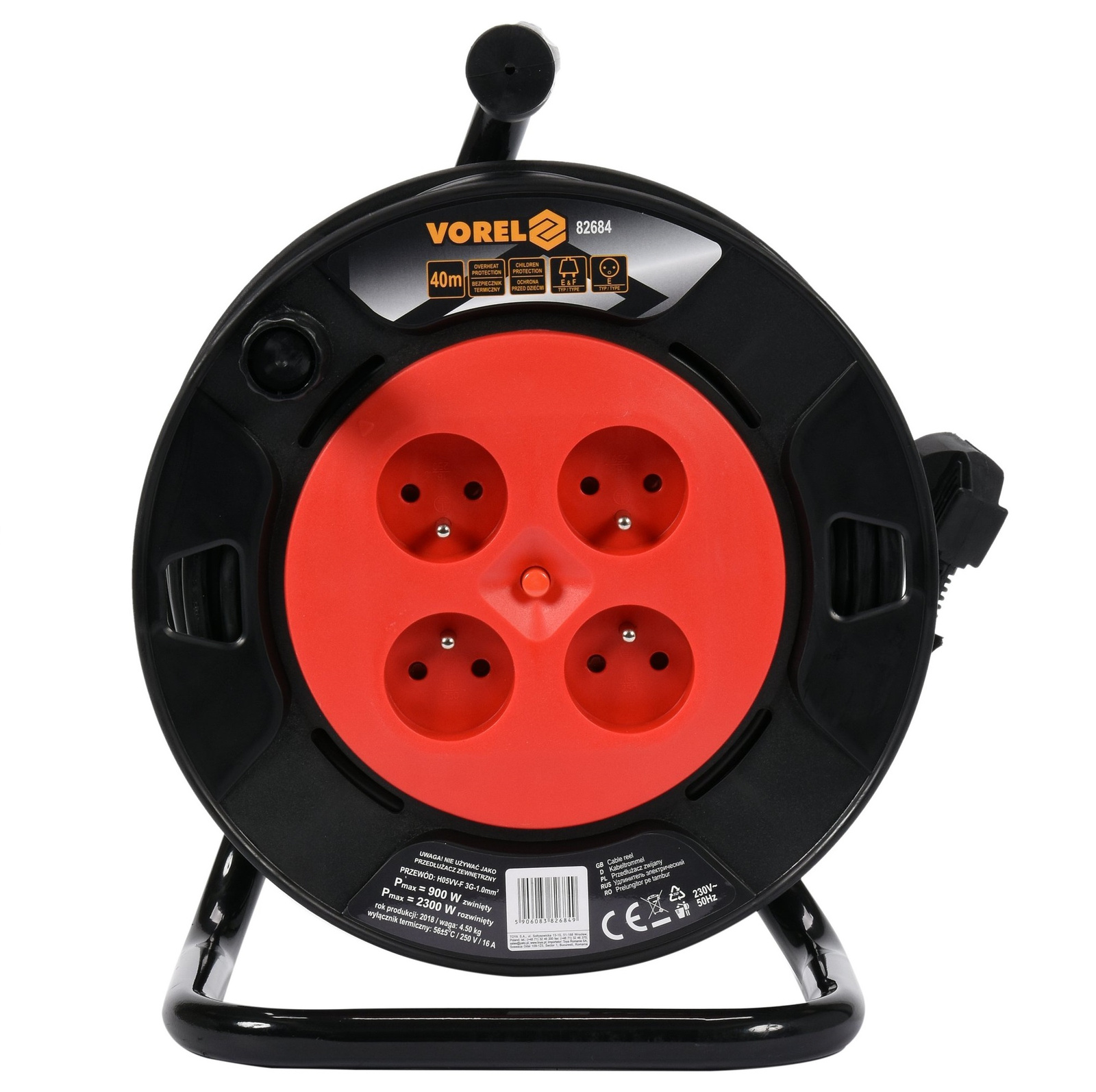 Prodlužovací kabel Vorel 82682 je praktickým a spolehlivým řešením pro napájení elektrických spotřebičů na delší vzdálenosti - v domácnosti, garáži, dílně nebo na zahradě. Je vybaven 4 uzemněnými zásuvkami a 25metrovým kabelem 3x1,0 mm² a umožňuje připojení několika zařízení současně s vysokou úrovní bezpečnosti. Buben je vyroben z odolného plastu a je upevněn na robustním kovovém rámu s rukojetí pro snadnou manipulaci. Integrovaná klička usnadňuje navíjení a ukládání kabelu po práci.