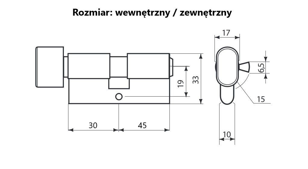 Profilová cylindrická vložka Gerda WKE1 s knoflíkem 30/45 mosaz 0WKE1G03045.98030P