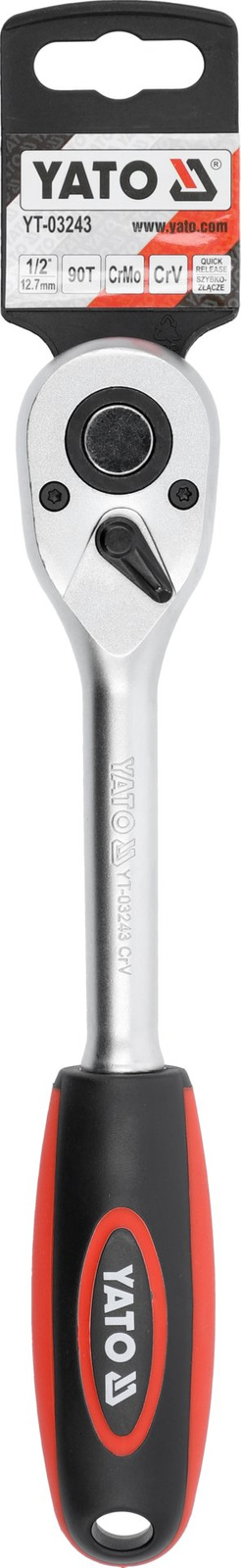 - Ráčna Yato rovná 1/2" 90T YT-03243 je přesný nástroj s mechanismem 90 zubů (4° zdvih). Vybavena odolnou CrV ocelí, ergonomická plastová rukojeť zajišťuje pohodlí a jistý úchop. Perfektní pro práci ve stísněných prostorách .