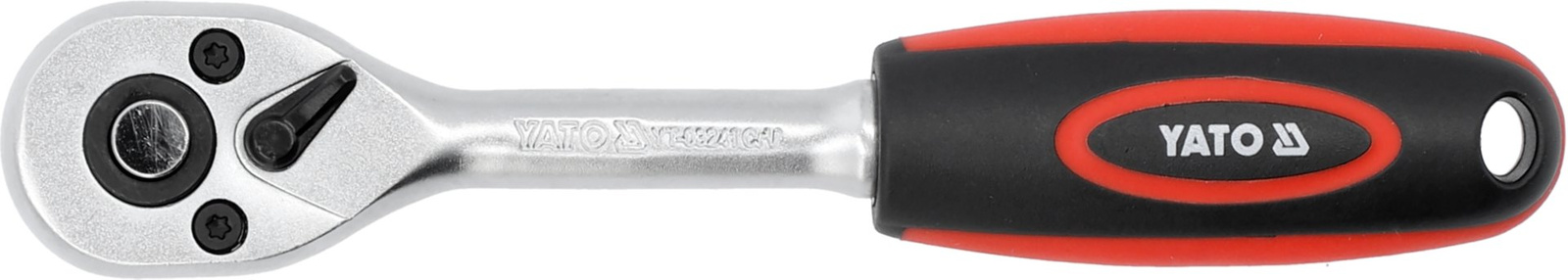 - Ráčna Yato rovná 1/4" 90T YT-03241 je přesný a odolný nástroj s mechanismem 90 zubů (4° zdvih). Vyrobeno z odolné CrV oceli, s ergonomickou plastovou rukojetí, zajišťuje pohodlí a pevný úchop při práci ve stísněných prostorách.