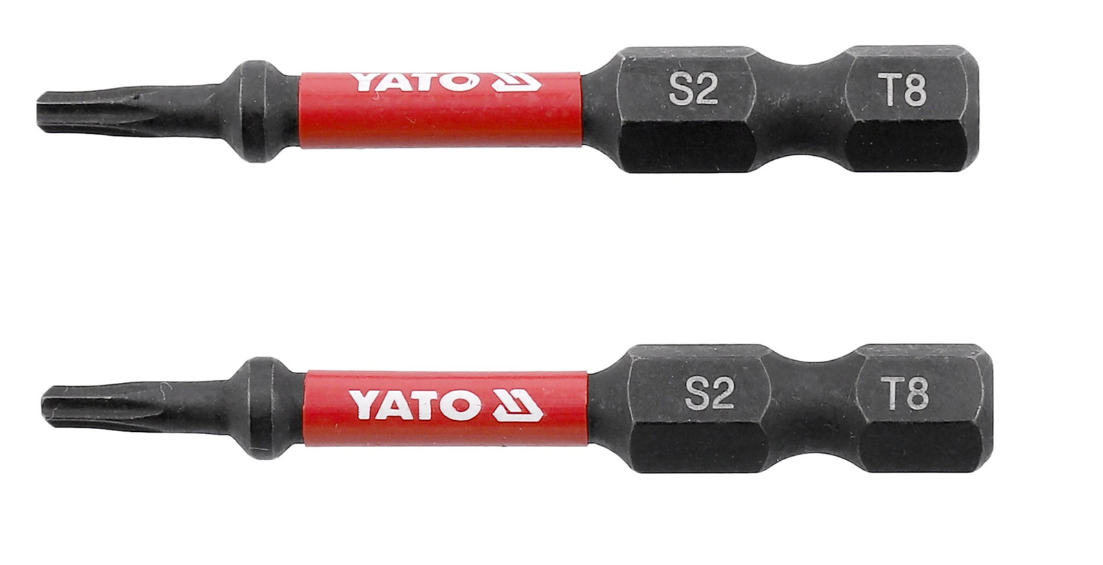 • Rázové bity Yato YT-78050 T8 (2 ks.) o délce 50 mm, vyrobený z vysokopevnostní oceli S2. Pasuje na šroubováky 1/4" HEX, ideální pro montážní a servisní práce. Odolnost vůči zatížení, která zajišťuje přesné uchycení.