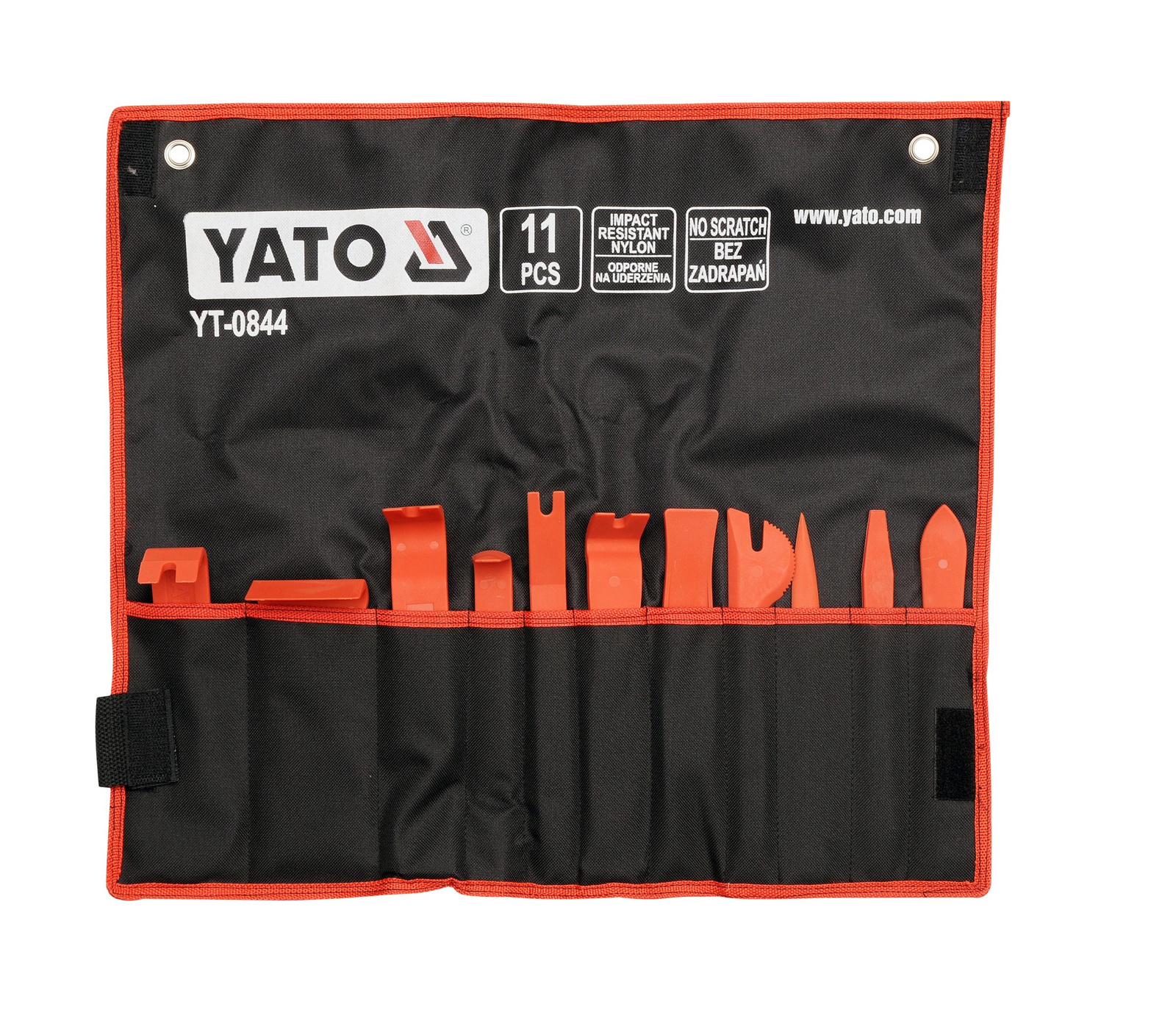 - Sada 11 dílů stahováku na čalounění Yato YT-0844 je profesionální nářadí pro odstraňování čalounění v automobilech, nábytku a pro další práce vyžadující přesné odstranění čalounění bez jeho poškození.